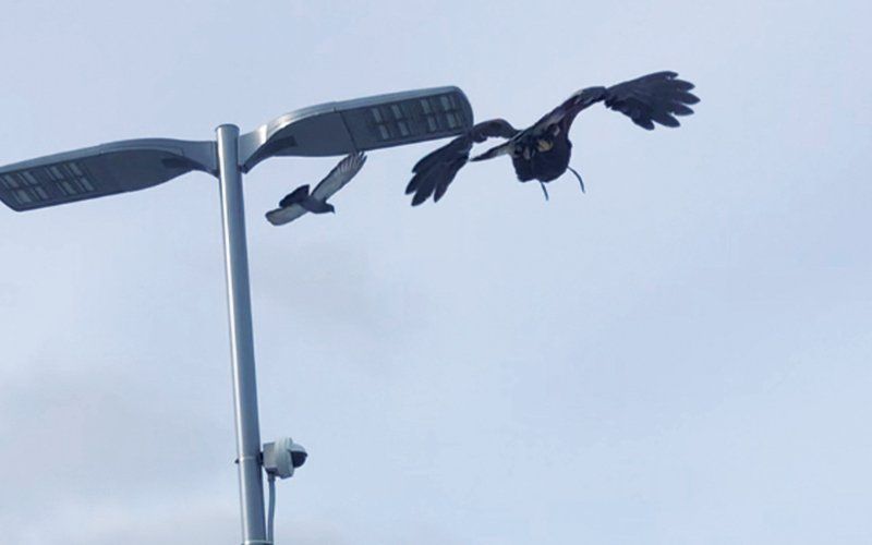 Crows are highly intelligent, making them more prone to ignore any deterrent you throw their way. They can gather in large, loud numbers to roost during the cooler months, and then nest in the Spring. They are known for "mobbing" predators to intimidate them to leave. Our hawks are trained to not be intimidated by this and stick around. This sends a message that your property is a dangerous place for them to be.