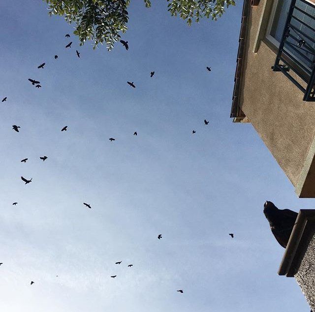 Crows are highly intelligent, making them more prone to ignore any deterrent you throw their way. They can gather in large, loud numbers to roost during the cooler months, and then nest in the Spring. They are known for "mobbing" predators to intimidate them to leave. Our hawks are trained to not be intimidated by this and stick around. This sends a message that your property is a dangerous place for them to be.